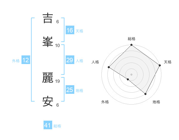 吉峯 麗安さんの総格は41画の5点!