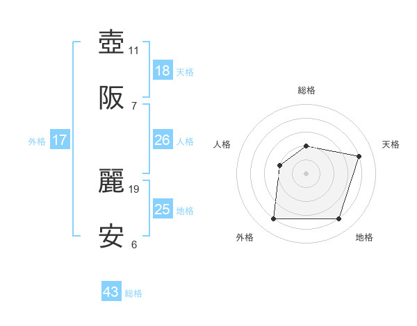 壺阪 麗安さんの総格は43画の2点!