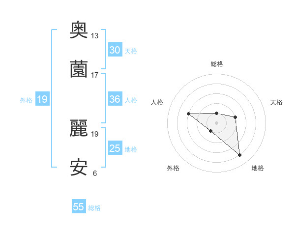 奥薗 麗安さんを姓名の画数から五運を鑑定