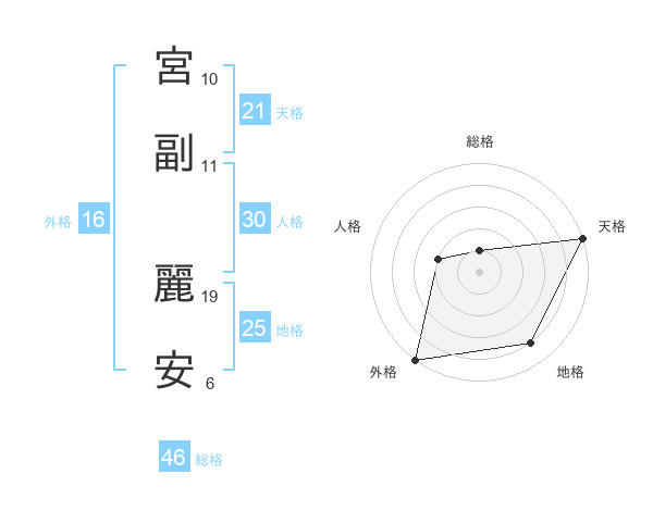 宮副 麗安さんの総格は46画の1点!
