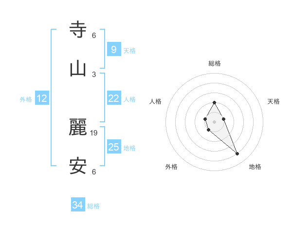 寺山 麗安さんの総格は34画の2点!