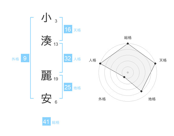 小湊 麗安さんを姓名の画数から五運を鑑定