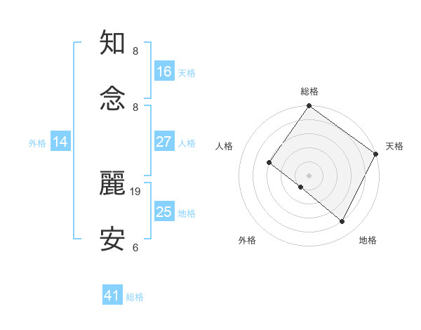 知念 麗安さんの総格は41画の5点!