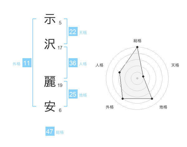 示沢 麗安さんを姓名の画数から五運を鑑定