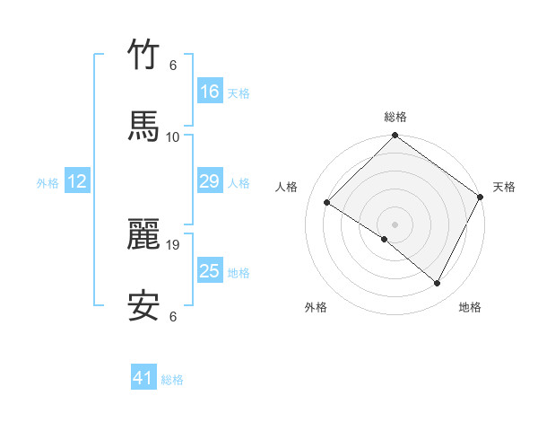 竹馬 麗安さんの総格は41画の5点!