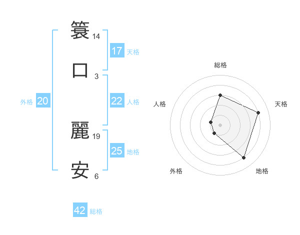 簑口 麗安さんの総格は42画の3点!