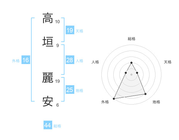 高垣 麗安さんの総格は44画の2点!