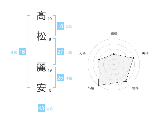 髙松 麗安さんの総格は43画の2点!