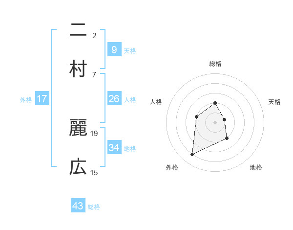 二村 麗広さんの総格は43画の2点!