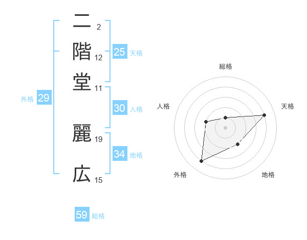 二階堂 麗広さんを姓名の画数から五運を鑑定