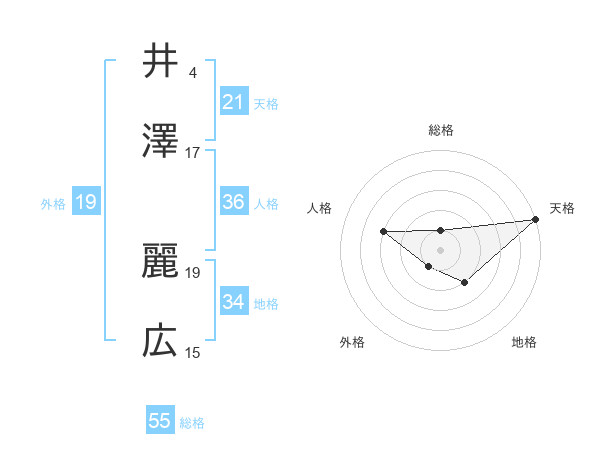 井澤 麗広さんの天格は21画の5点!