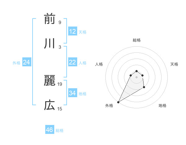 前川 麗広さんの総格は46画の1点!