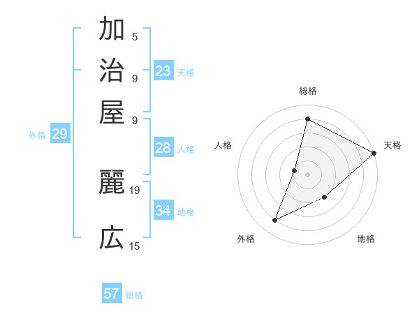加治屋 麗広さんの総格は57画の4点!