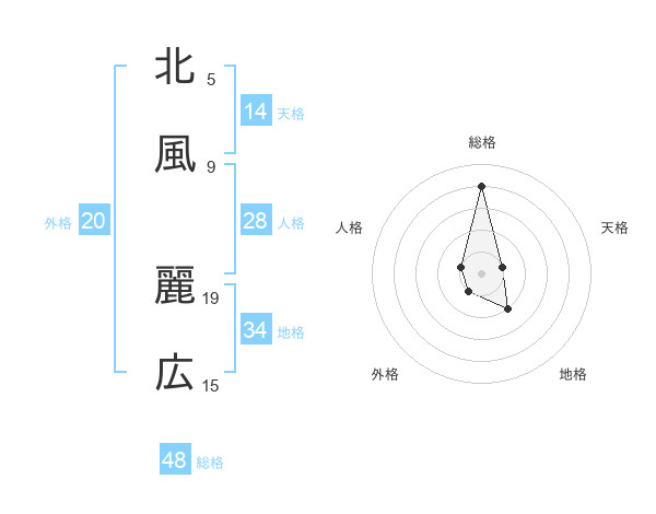 北風 麗広さんの総格は48画の4点!