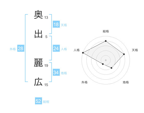 奥出 麗広さんを姓名の画数から五運を鑑定