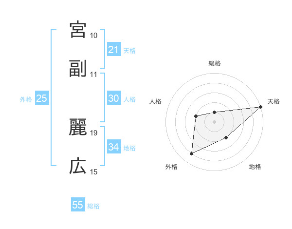 宮副 麗広さんを姓名の画数から五運を鑑定