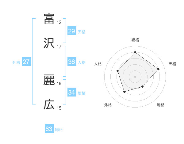 富沢 麗広さんを姓名の画数から五運を鑑定