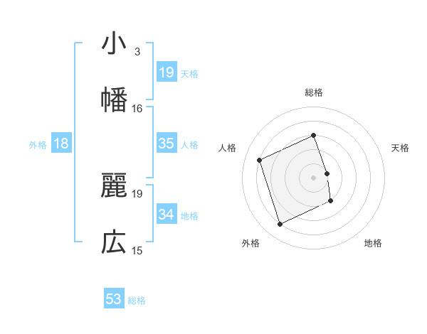 小幡 麗広さんの総格は53画の3点!