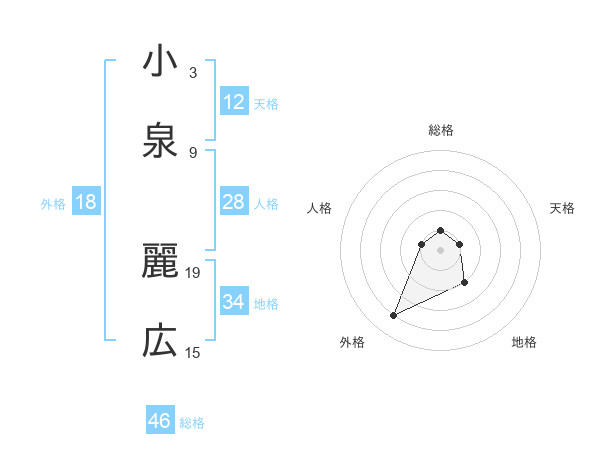 小泉 麗広さんの総格は46画の1点!