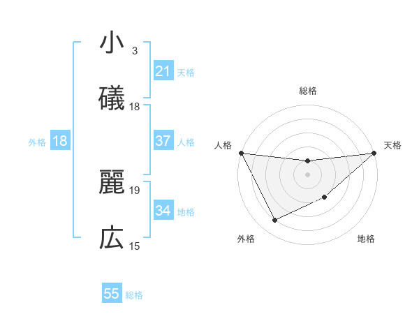 小礒 麗広さんの総格は55画の1点!