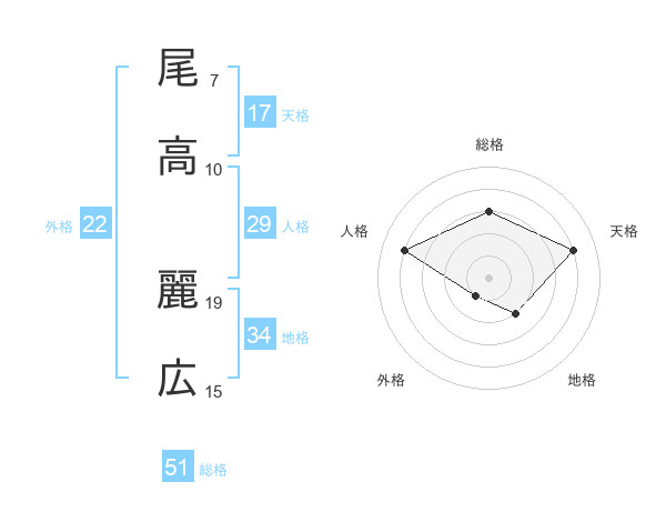 尾高 麗広さんの総格は51画の3点!