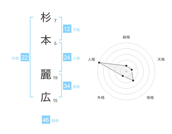杉本 麗広さんの総格は46画の1点!