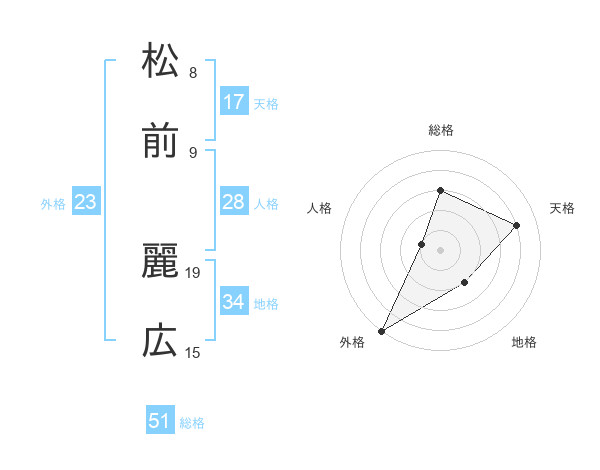 松前 麗広さんの総格は51画の3点!