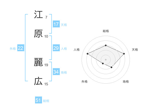 江原 麗広さんの総格は51画の3点!