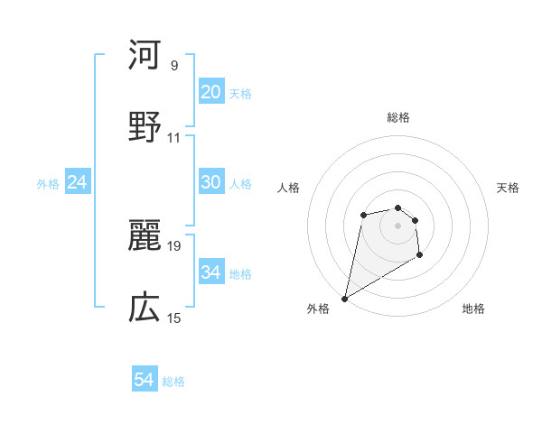 河野 麗広さんの総格は54画の1点!