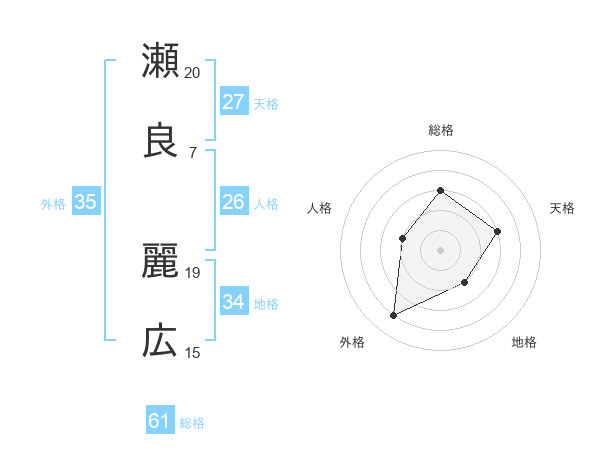 瀬良 麗広さんの総格は61画の3点!