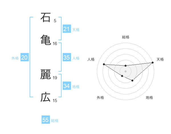 石亀 麗広さんを姓名の画数から五運を鑑定