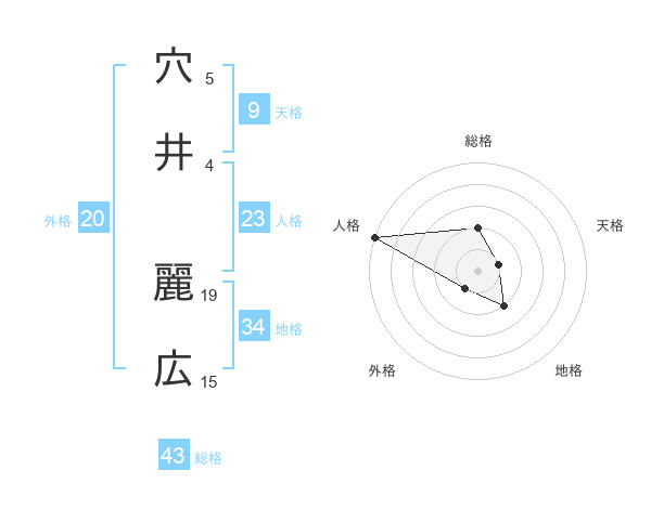 穴井 麗広さんを姓名の画数から五運を鑑定