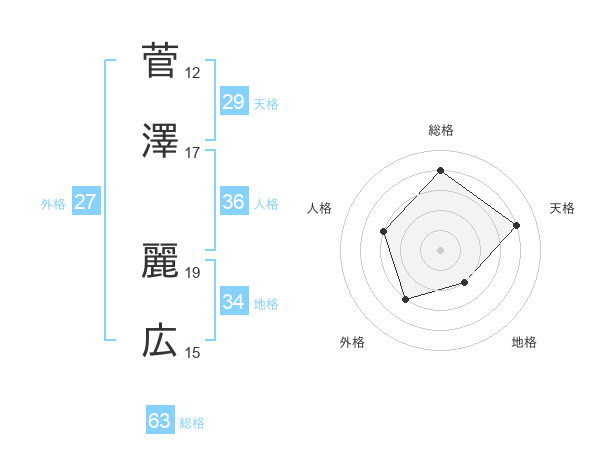 菅澤 麗広さんの総格は63画の4点!