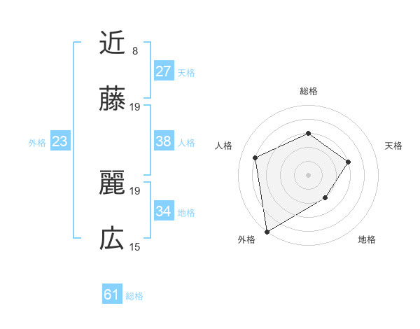 近藤 麗広さんの外格は23画の5点!