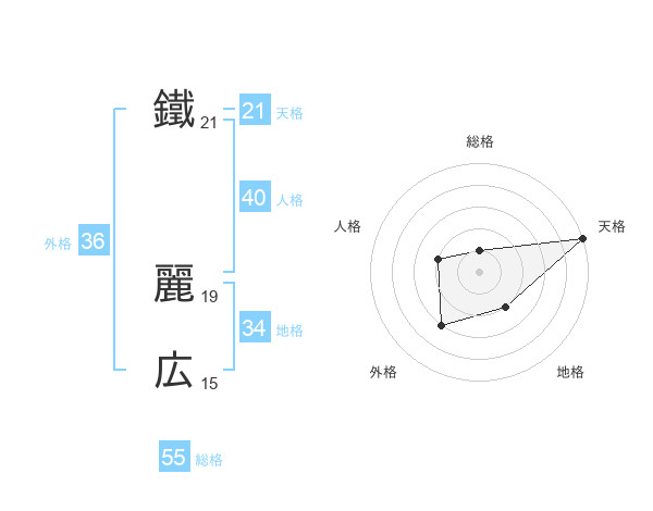 鐵 麗広さんの天格は21画の5点!