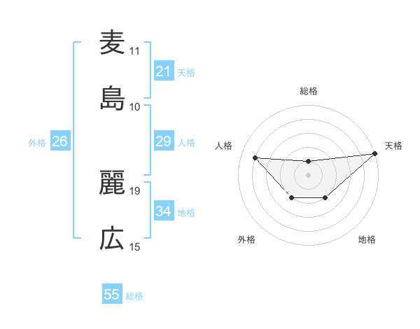 麦島 麗広さんの総格は55画の1点!