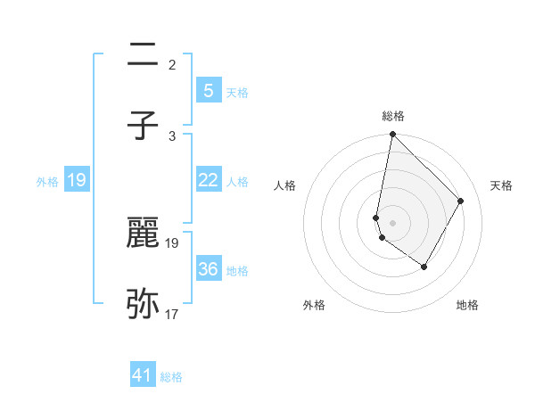 二子 麗弥さんの天格は5画の4点!