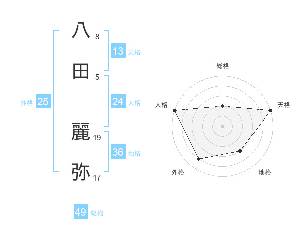 八田 麗弥さんの天格は13画の5点!
