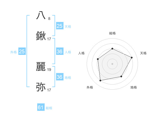 八鍬 麗弥さんを姓名の画数から五運を鑑定