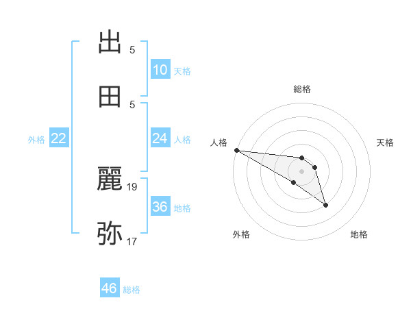 出田 麗弥さんの外格は22画の1点!