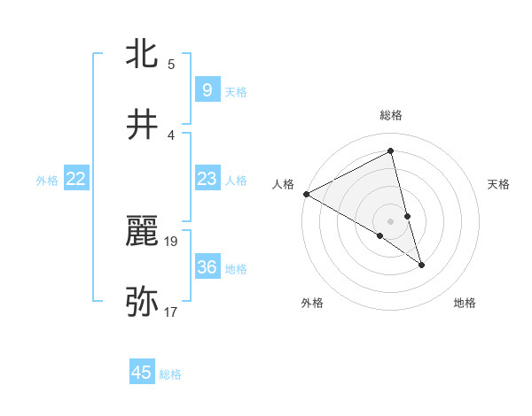 北井 麗弥さんの総格は45画の4点!