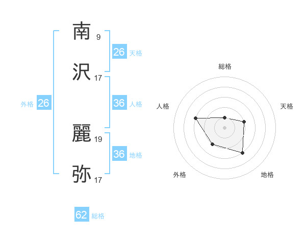 南沢 麗弥さんの総格は62画の1点!