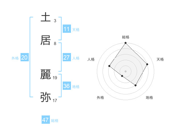土居 麗弥さんの総格は47画の5点!