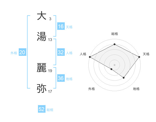 大湯 麗弥さんの天格は16画の5点!