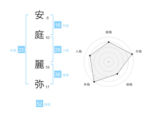安庭 麗弥さんの総格は52画の4点!