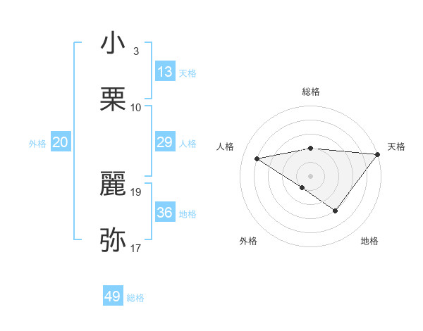 小栗 麗弥さんの総格は49画の2点!