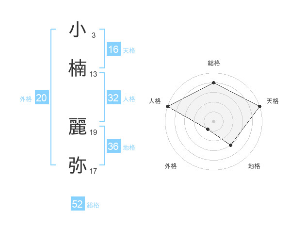 小楠 麗弥さんの外格は20画の1点!