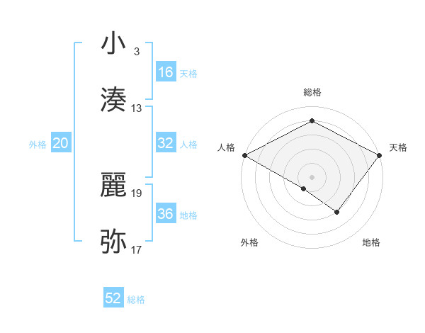 小湊 麗弥さんを姓名の画数から五運を鑑定