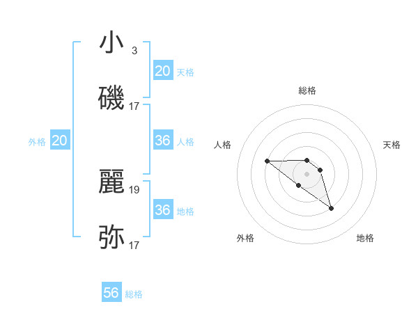 小磯 麗弥さんの天格は20画の1点!