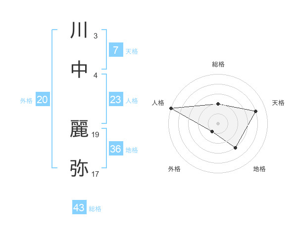 川中 麗弥さんの天格は7画の4点!